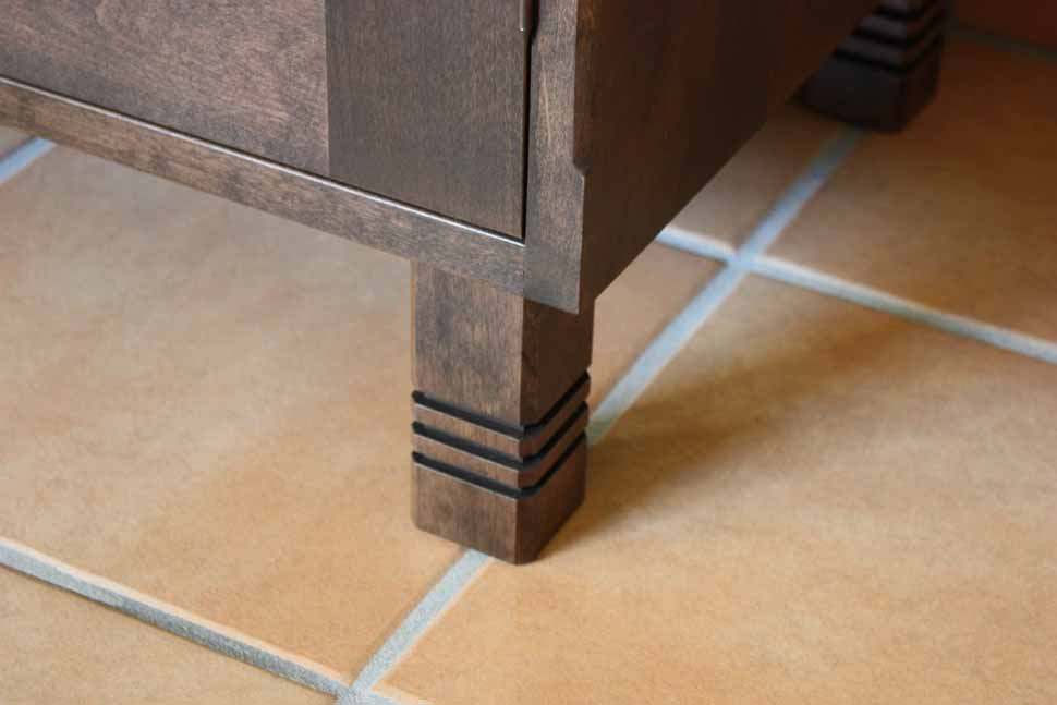 足元を持ち上げて軽やかなデザインにし、アクセントとして白いデスクと同じ掘り込みを脚に施しました。